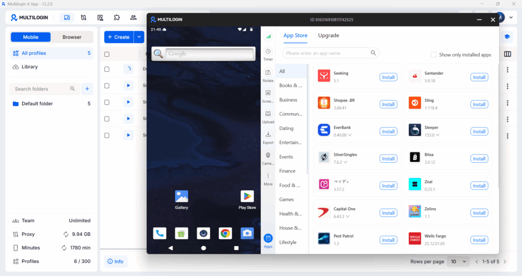 This is where Multilogin Cloud Phones come in. Each Cloud Phone is a real Android device running in the cloud. Your team member accessing a client’s Instagram is doing it from a physical Android device with its own IMEI, its own Android ID, its own hardware fingerprint, and its own residential IP. The platform sees a separate phone, because it is a separate phone.