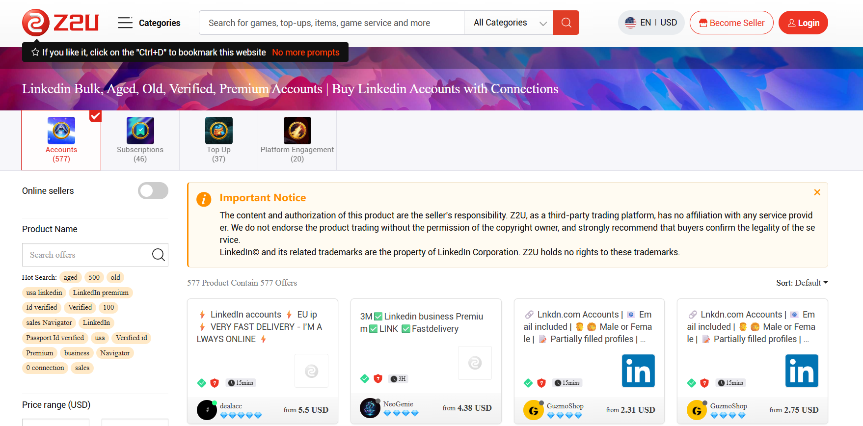 How legal is to buy LinkedIn accounts