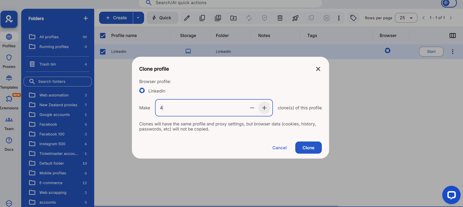 Use tags (e.g., client-A, recruiter, aged-PVA) and add notes in the profile metadata for important details (phone verified, birthdate used, connection strategy). Tags are invaluable when you scale to dozens or hundreds of profiles.