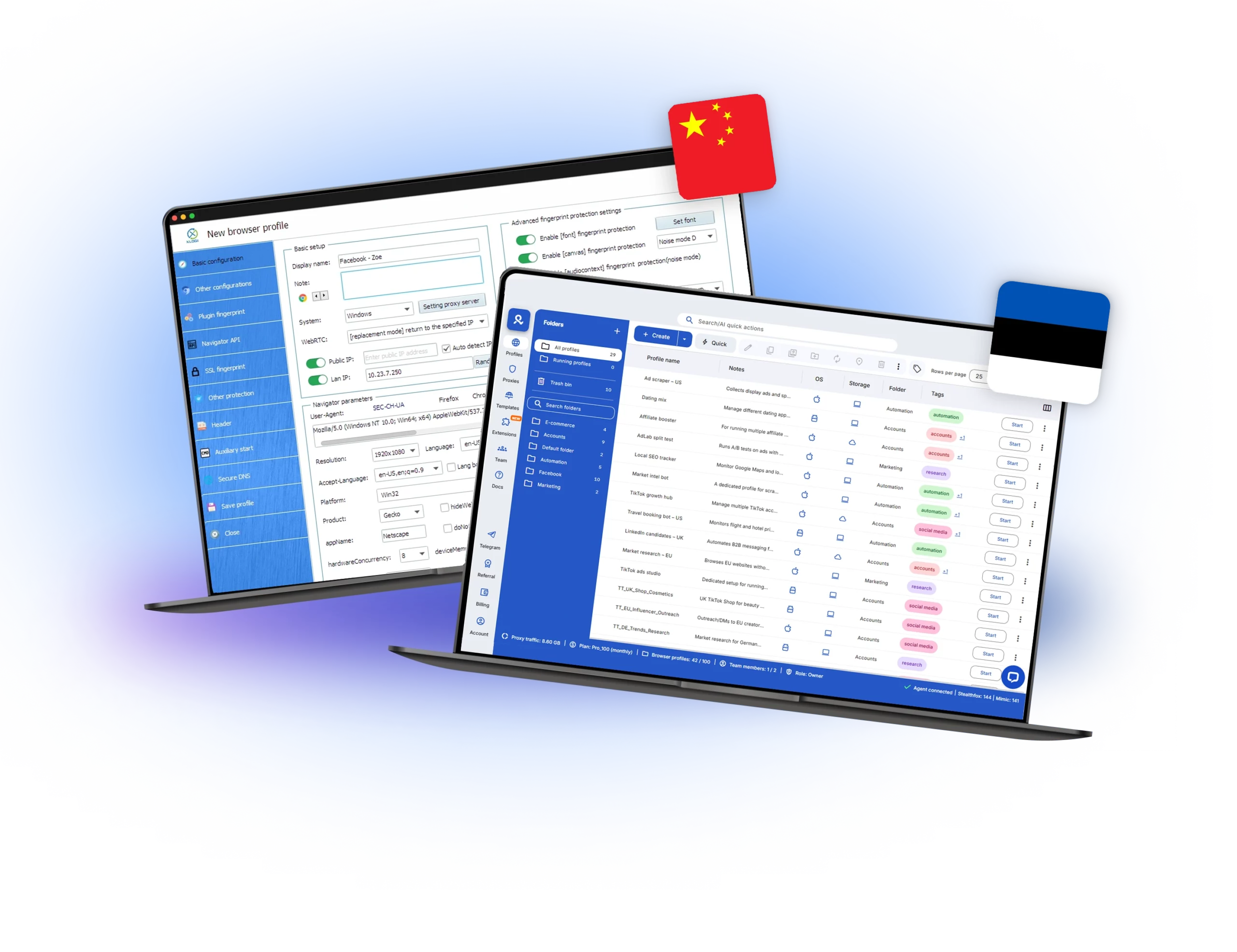 Multilogin delivers advanced, fully dynamic fingerprinting across more than 55 parameters, including canvas, WebGL, geolocation, timezone, and language.