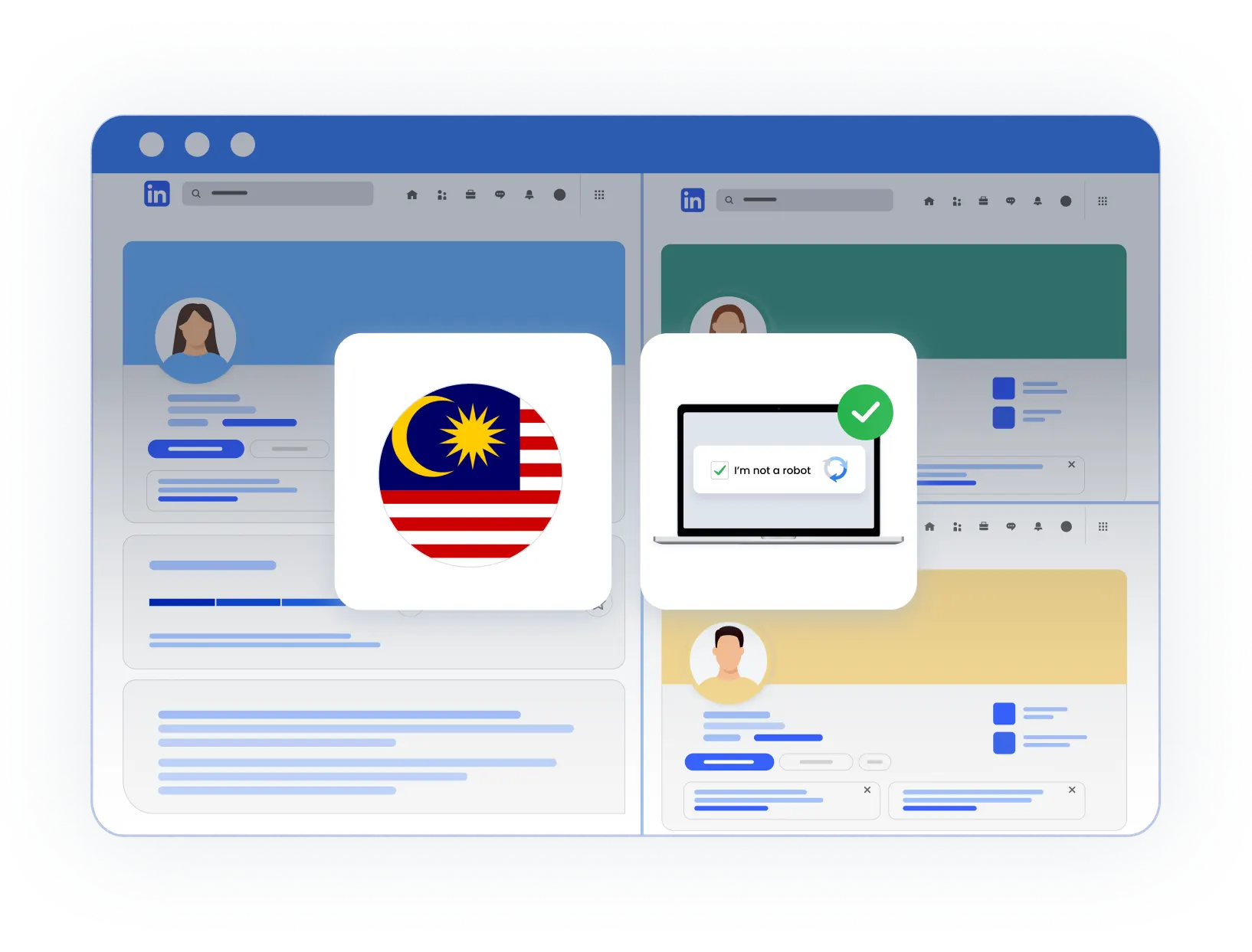 Create and manage multiple accounts from one device using Multilogin’s Malaysia proxy. Each account connects through a local Malaysian IP and runs with its own browser identity, helping reduce account restrictions and frequent CAPTCHA challenges while keeping sessions stable during daily work.