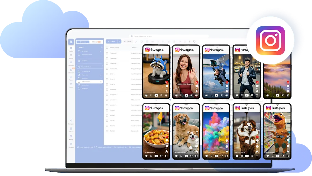 Use mobile and web together safely: Run the Instagram app on cloud phones while managing web access through isolated browser profiles, keeping both environments separate.