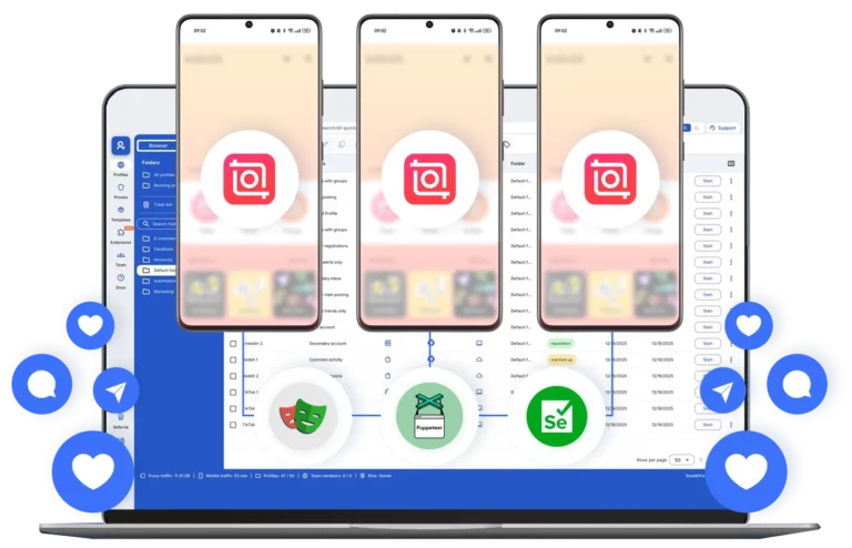 Manage multiple InShot accounts using cloud phones for the mobile app and browser profiles for web workflows — each with its own storage, device identity, and app data.