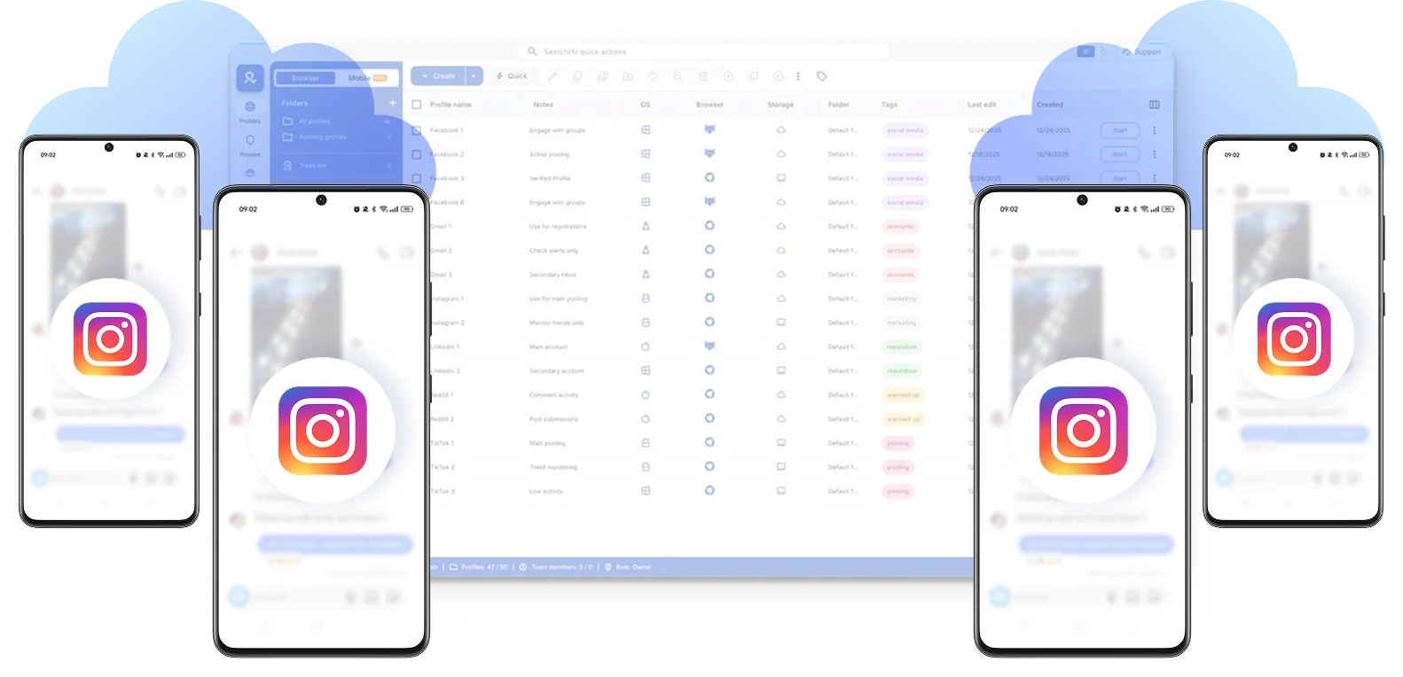 Launch as many Instagram accounts as you need on Android cloud phones or isolated browser profiles for any case. Clone, bulk‑create, and manage them in parallel.