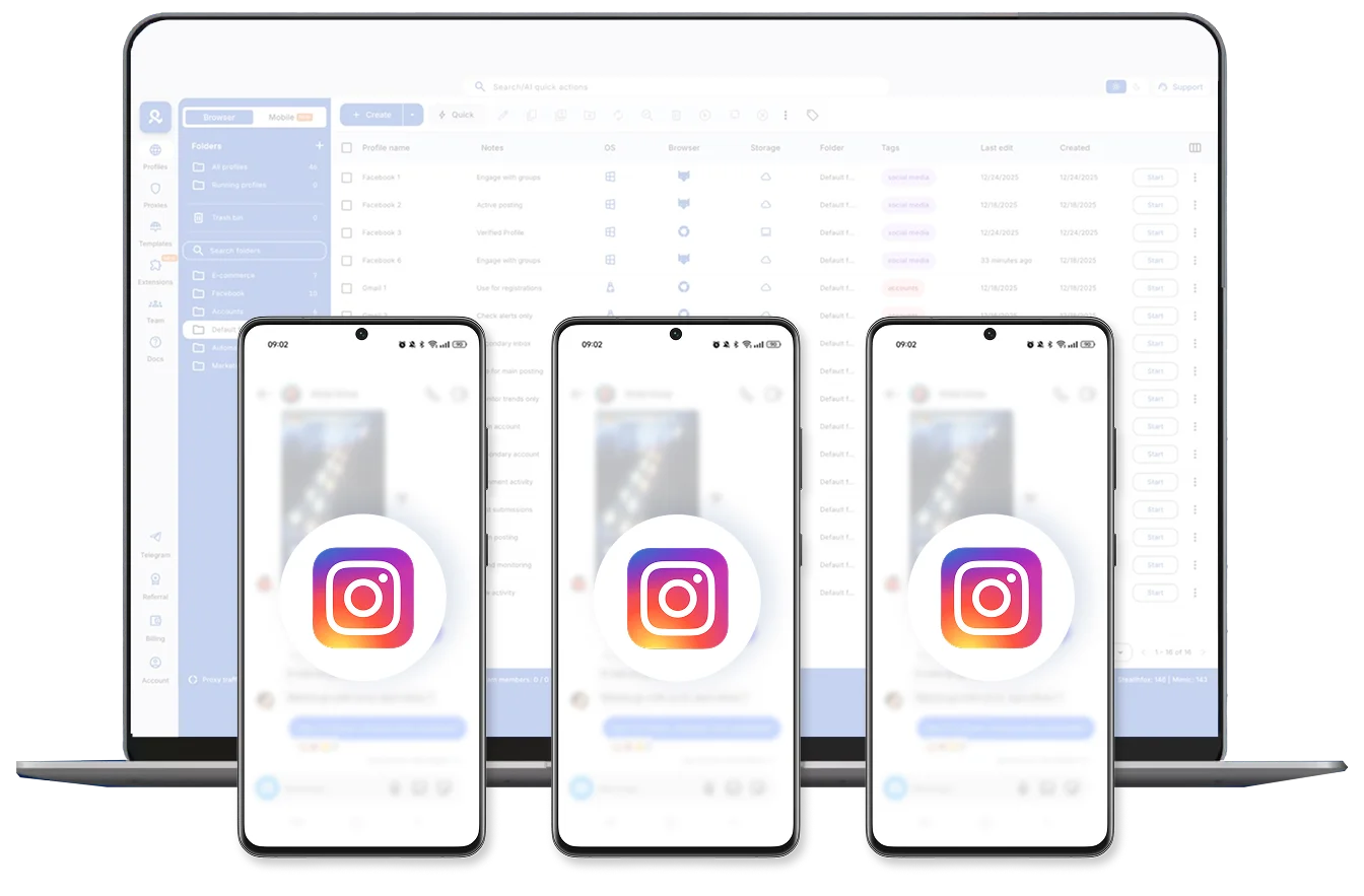 Multilogin makes managing multiple Instagram accounts easier. It keeps sessions stable, organizes accounts in one place, and provides all the tools you need for efficient, consistent performance.