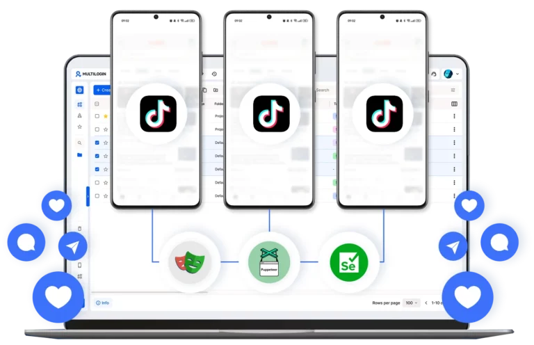 Multilogin is perfect for individuals and teams that need to run multiple TikTok accounts. You can operate regional accounts from one location and warm up new accounts using persistent mobile sessions. All accounts can be automated with library scripts like Selenium, Playwright, and Puppeteer. If you are working with a team, you can easily build workflows around your account setup. This makes Multilogin an all-in-one solution.