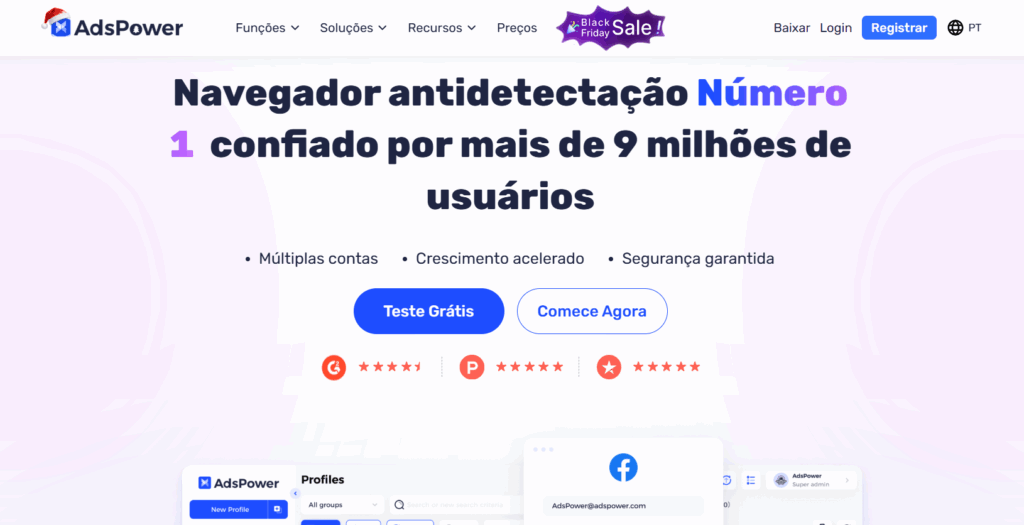 O AdsPower é bastante popular entre usuários de Shopee, Lazada e Taobao. Oferece um painel moderno, múltiplos núcleos de navegador e automações integradas.