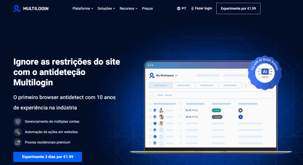 O Multilogin continua dominando por um motivo. Com controle avançado de fingerprint, alta estabilidade do navegador, automação robusta e gerenciamento flexível de equipes, ele é a escolha ideal para profissionais que gerenciam múltiplas identidades digitais.
