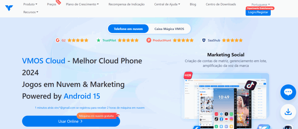 VMOSCloudJogos e Operações ContínuasOperação em nuvem 24 horas por dia, 7 dias por semanaTelefone em nuvem$0.11/dia
