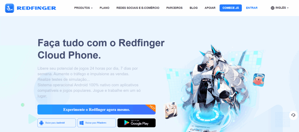 A descrição do Redfinger na Google Play o define como um emulador de Android na nuvem, executado em um servidor na nuvem, com foco no acesso em qualquer lugar e no uso em vários dispositivos.