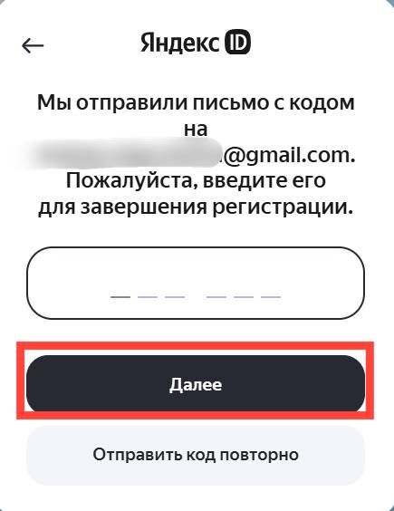 - Введите проверочный код из письма, отправленного на указанный адрес.